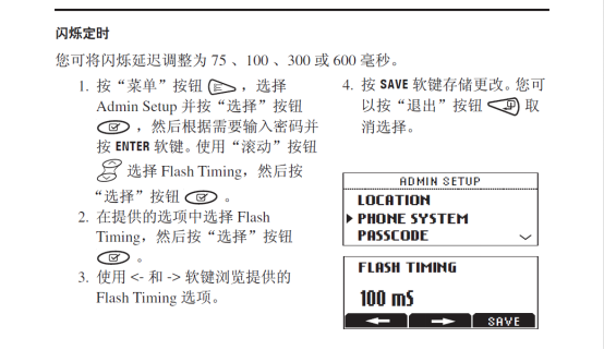 (菜单——Admin Setup——Phone System——Flash Timing)