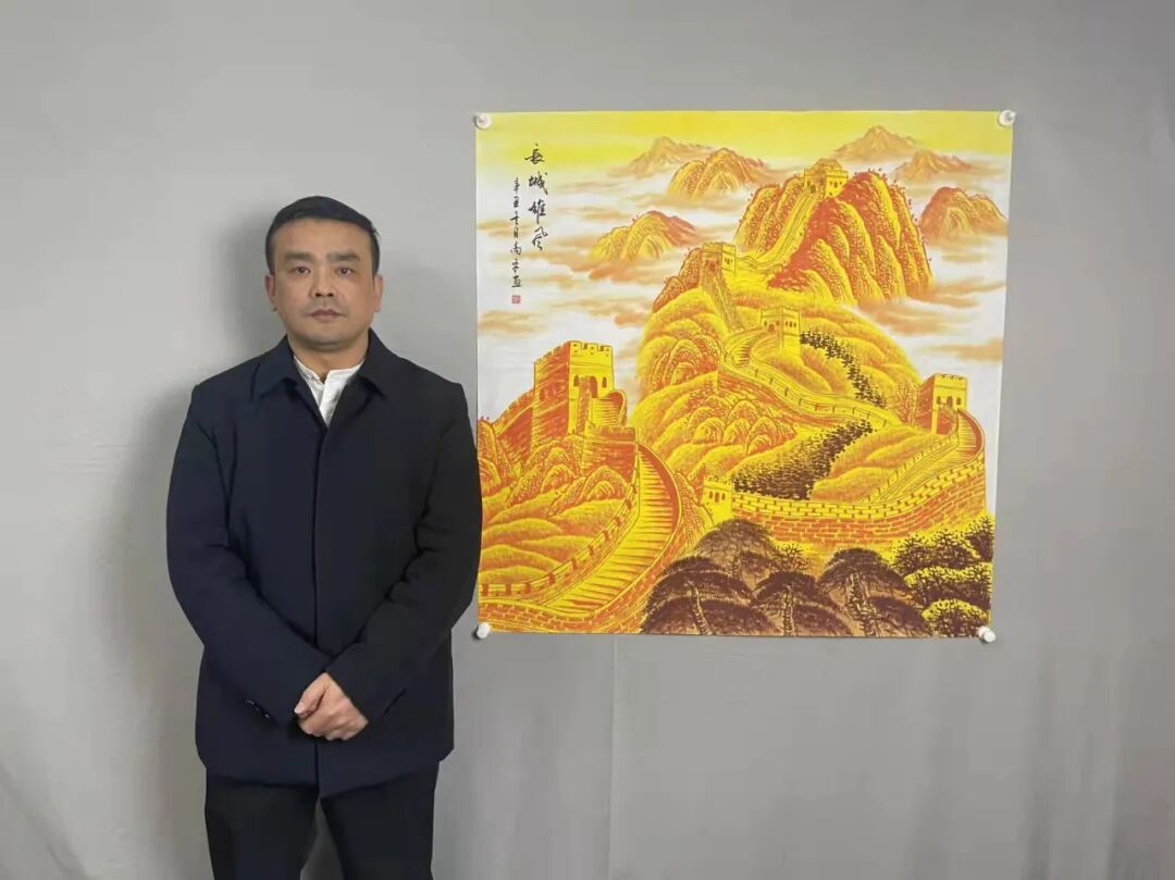 高平书画家与《长城雄风》作品合影授权