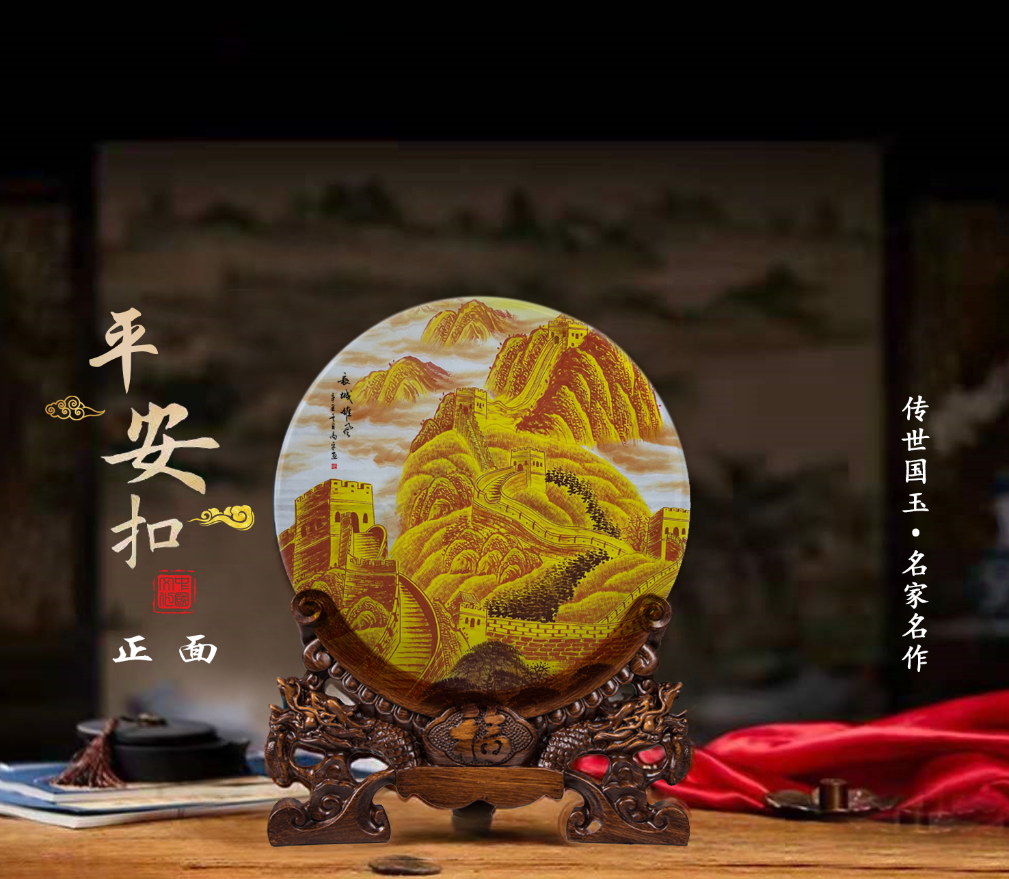 高平书画家与《长城雄风》作品印制在收 藏级玉石赏盘面(画心款)